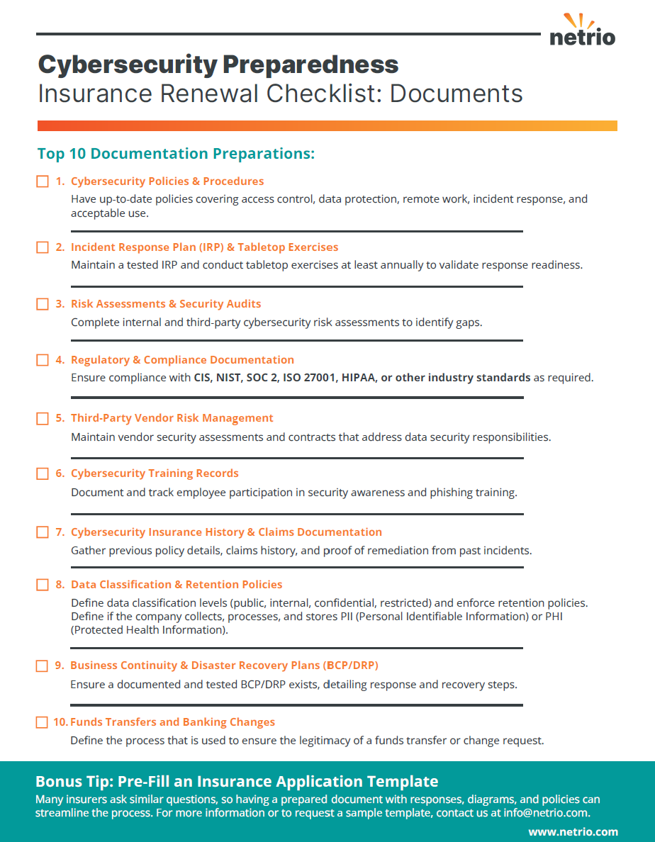 Cybersecurity Preparedness Insurance Renewal Checklist